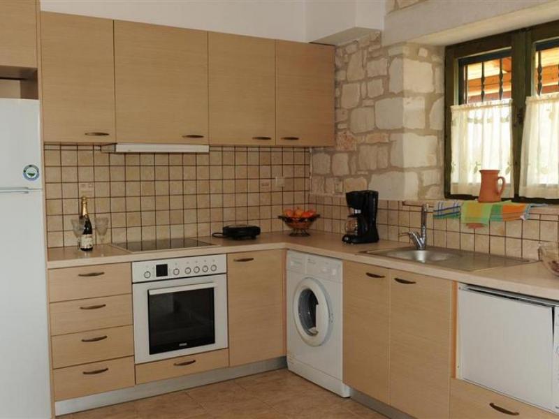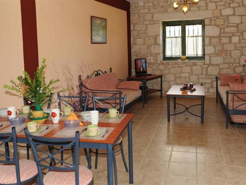 Τα διαμερίσματα του ισογείου αποτελούνται από δύο ξεχωριστές κρεβατοκάμαρες με διπλά και μονά κρεβάτια, δύο μπάνια, πλήρως εξοπλισμένες κουζίνες με φούρνο, ηλεκτρική κουζίνα, πλυντήριο πιάτων, ψυγείο, μηχανή καφέ, βραστήρα και όλα τα μαγειρικά σκεύη, καθιστικό, κλιματισμό, δορυφορική τηλεόραση, συσκευή DVD και επιπλωμένες βεράντες με θέα στους κήπους.