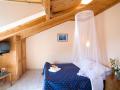 Υπάρχουν δίκλινα και τρίκλινα δωμάτια – studios - διαμερίσματα για να φιλοξενήσουν 4 έως 5 άτομα. Όλα τα δωμάτια και τα διαμερίσματα διαθέτουν ξύλινα έπιπλα και πλακάκια στο δάπεδο. Όλα τα δωμάτια έχουν μπαλκόνι με θέα στον κήπο. Τα δωμάτια – studios - διαμερίσματα που βρίσκονται στη σοφίτα έχουν θέα στη θάλασσα.