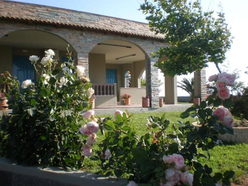Το «Ηλιοβασίλεμα» στεγάζεται σε έναν κήπο 4 στρεμμάτων περιστοιχισμένος από δέντρα και λουλούδια με θέα το απέραντο γαλάζιο του Ιονίου πελάγους.
