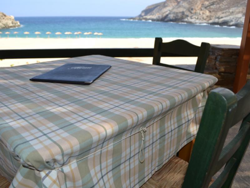 Nel tradizionale - la nostra taverna a conduzione familiare sotto le nostre camere "con tanto amore e cura quotidiana offrono una grande varietà di alimenti, arrosto e bollito, sempre utilizzando ingredienti freschi e naturali, tutta la nostra produzione, come carni (agnello, capretto, manzo, maiale), verdure di stagione del nostro orto e formaggio (gruviera, formaggio, formaggio, aspro). Qui si svolge il mondo della cucina tradizionale greca con i migliori sapori delle Cicladi.